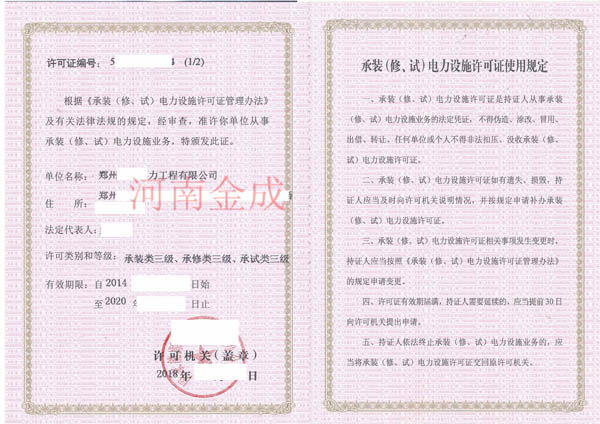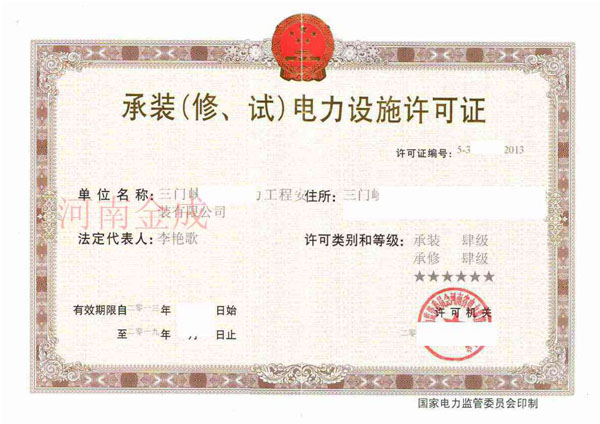 • 承裝(修、試)電力設施許可證