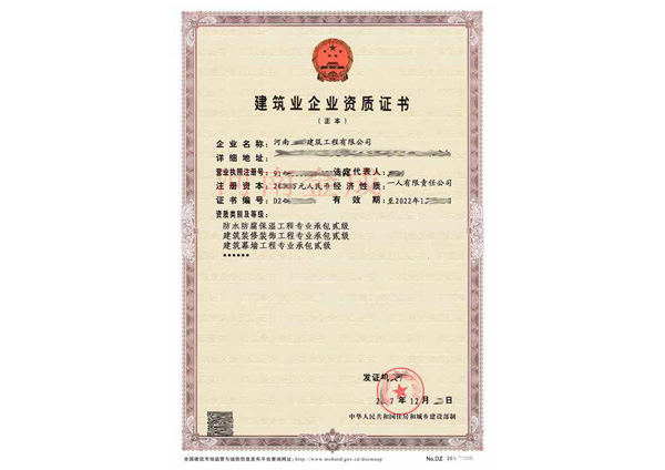 • 建筑業企業資質證書